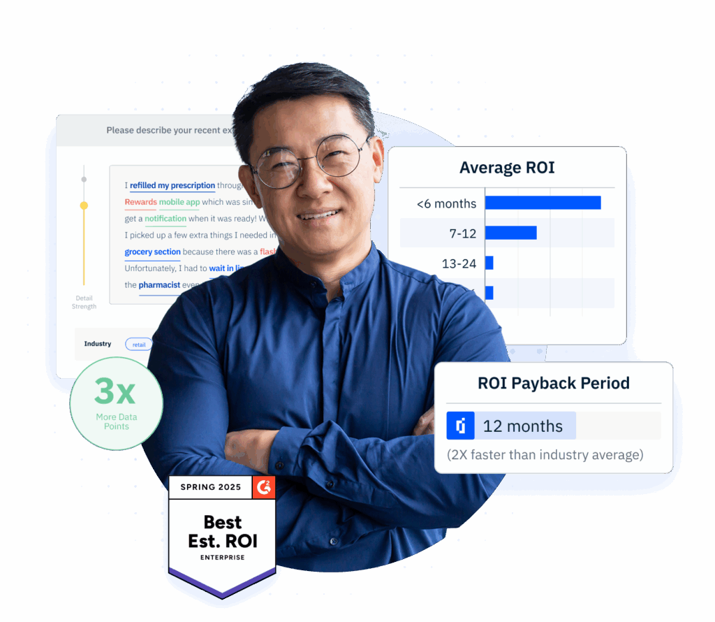 The InMoment difference: InMoment combines industry-leading NLP and domain adapted LLMs with hands-on professional services to help clients realize ROI — twice as fast as industry average.